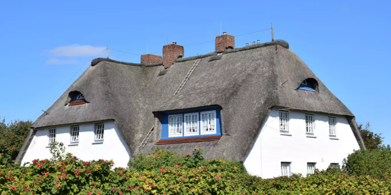 Eine stilvolle 5-Zimmer-Wohnung mit ca. 110 m² in einem klassisch schönen Reetdachhaus in Keitum. 1 Wohnzimmer, 3 Schlafzimmer, 2 Bäder, 1 Küche, 1 Hauswirtschaftsraum, 1 Terrasse.