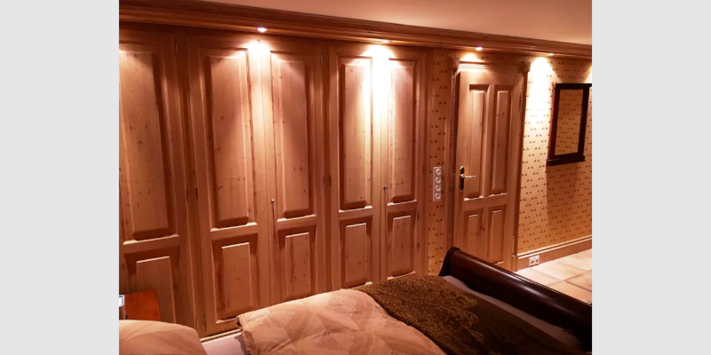 Für viel Licht sorgt ein großes Fensterelement zur Terrasse hin, das Sie komplett öffnen können. Zwei weitere Fenster lassen ebenfalls angenehmes Tageslicht herein. Am Abend zaubern indirekte Beleuchtungen und Jalousien aus Kirschholz eine wunderbare Atmosphäre.